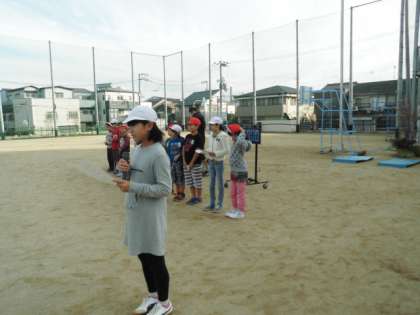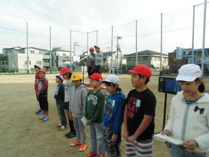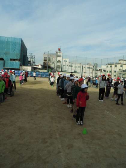 縦割り班ごとに並んだ子どもたちは、しっかりと説明を聞いていました。