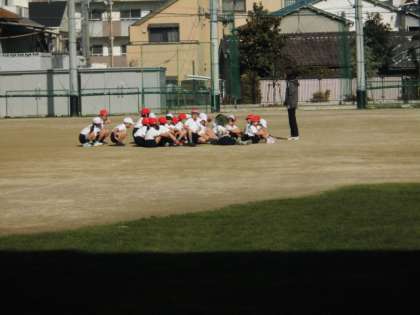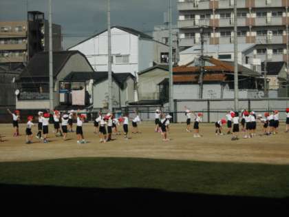 2時間目の運動場を見ると、1年生の体育が始まっていました。