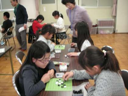 そして、いよいよ 碁を打ち始めました。指で碁をはさむ手つきも慣れてきたようです。 困ったとき、分らないときには 挙手して囲碁の先生方に教わりながら打っていきました。前回より、レベルアップを目指した楽しい囲碁教室でした。三学期もよろしくお願いします。