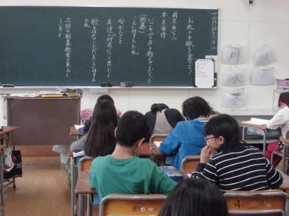 ・国語の時間に、昨日 囲碁教室で指導してくださった先生方に感謝の気持ちを込めて手紙を一人一人書きました。昨日はお礼のしるしに、歌を披露して、感動してくださいました。きょうは、この手紙で気持ちが伝わりますように。
