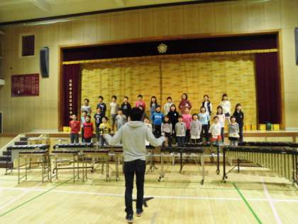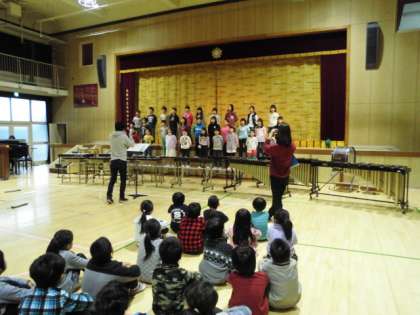2年生の合奏に続いて、今度は3年生の歌声を2年生たちが聴いています。