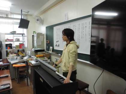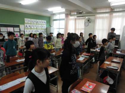 3年生は、国語タイム、健康チェックを終えて、学級で12月にちなんだ歌を歌っていました。