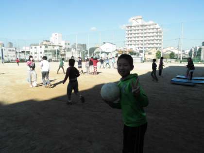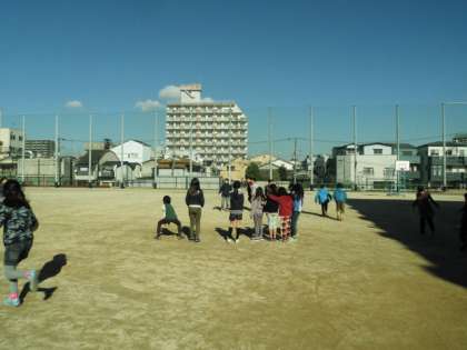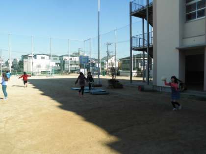 授業終わりのチャイムが鳴ると、子どもたちが運動場に出てきます。