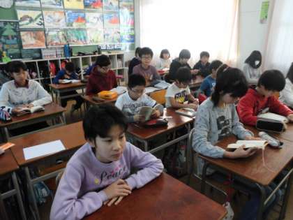 6年生の教室をのぞいてみると、各自が課題をもって取り組んでいました。もう、課題を終えた子どももいました。