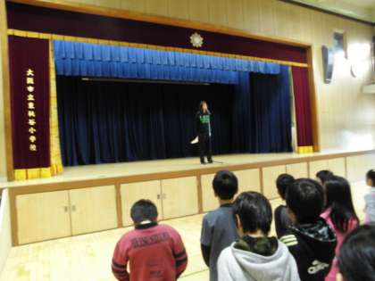 8時30分前に児童がそろいましたので、定刻前にあいさつから児童朝会を始めました。