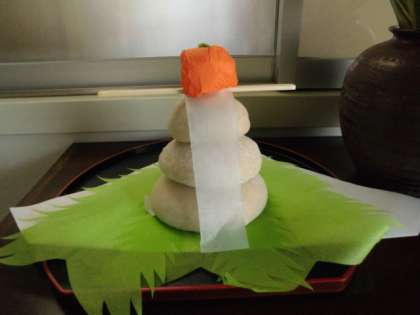 先日のもちつき大会の折に、ついていただいた鏡餅を飾っています。