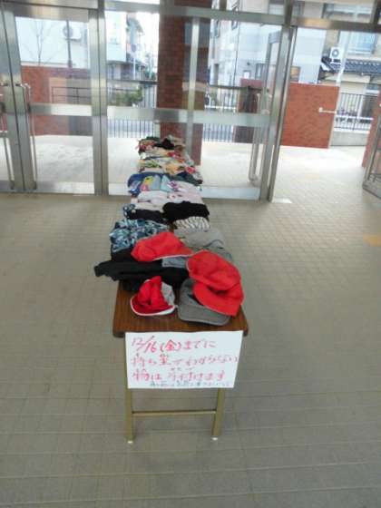 今日までの期限で、忘れ物・落し物を玄関に置いています。
