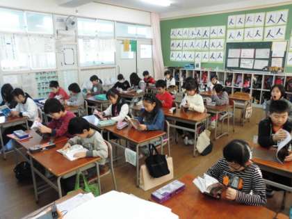 水曜日の朝は、さんすうすいすいタイムですが、3年生は、自由読書を行っていました。