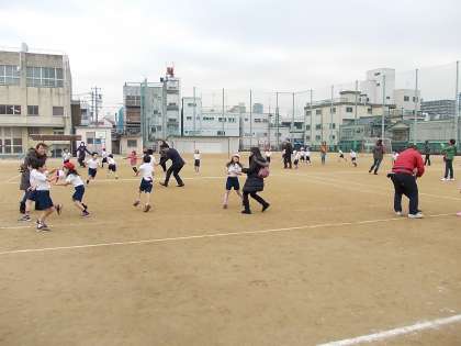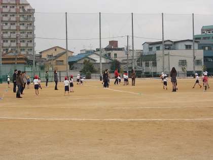 運動場で、「しっぽとりゲーム」「ドッジボール」をしました。広い運動場を力いっぱい走りまわっていました。