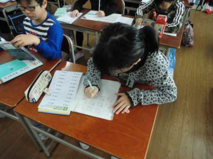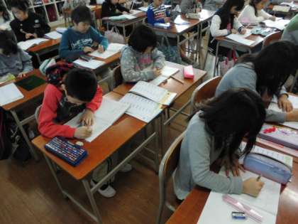 3年生の教室も、子どもたちだけでさんすうすいすいタイムの活動をしていました。