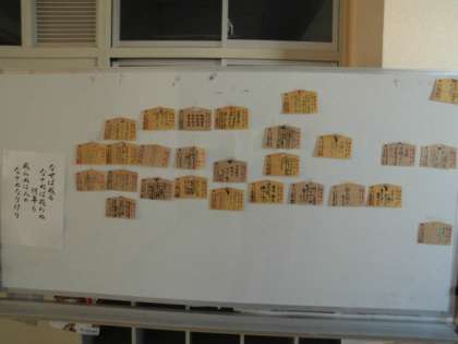 教室の外には、願い事が書かれた絵馬が掲示されていました。