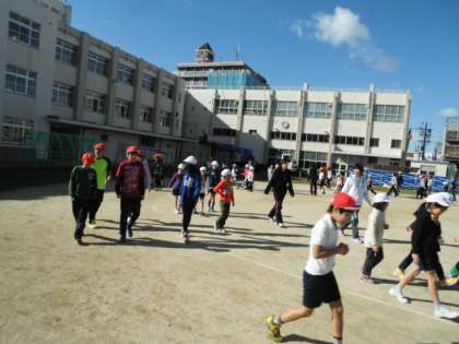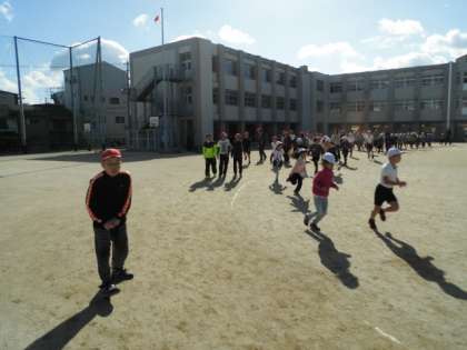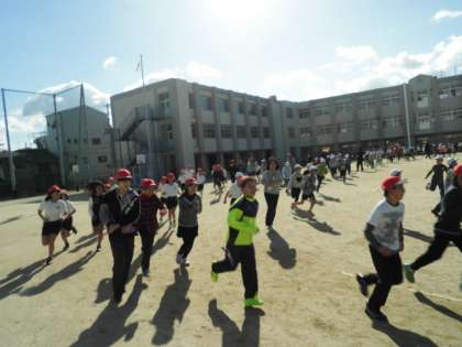 今年度の全校駈け足は「ひがももRUN」と名前をつけて今日から2週間行います。