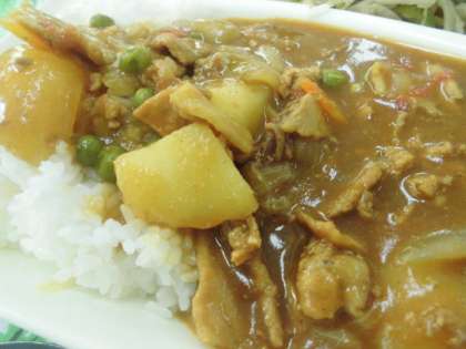 ポークカレーライスは、豚肉にワインの下味をつけ、にんにくの香りをたたせたサラダ油でいためるなど、手の込んだ調理でカレーのこくを出したり、しっかりと素材のよさや味わいを引き出したりしています。