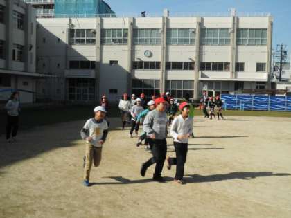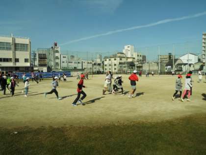 今日は、1・2年生が講堂で老人会(ふくろうの家クラブ)とのふれあい交流、4年生が阿倍野防災センターへの社会見学で駈け足には参加できませんでした。しかし、3・5・6年生の子どもたちは元気よく走っていました。今年は、寒いですが、天候に恵まれているので、十分に走ることができます。