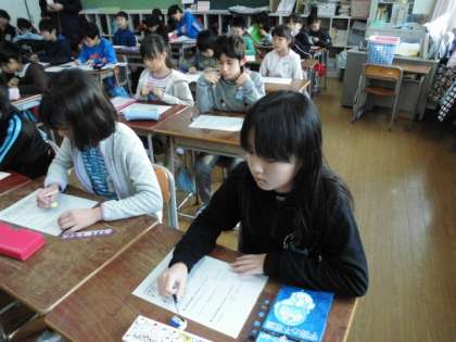 4年生は、プリントの表裏に算数計算と漢字の問題が印刷されたものにチャレンジしていました。