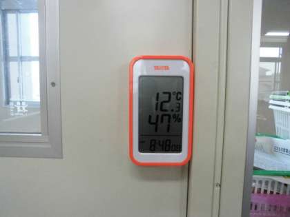 教室内の湿度が低くなりがちです。60パーセント程度を維持したいのですが、エアコン暖房ではいろいろと工夫してもなかなか60パーセントは達成できないようです。
