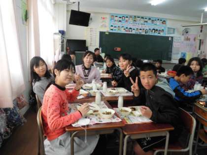 子どもたちは、ソムセンニムとの交流給食をとても楽しみにしているようです。