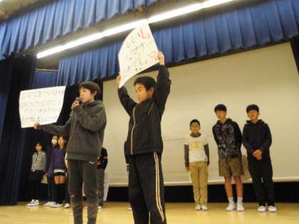 また、給食調理員の苦労や「いただきます」「ごちそうさま」の挨拶についての話やマナーについてのクイズもありました。