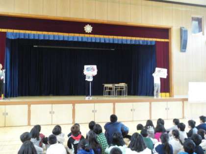 4・5・6年生児童が参加し、健康委員会児童の発表が始まりました。