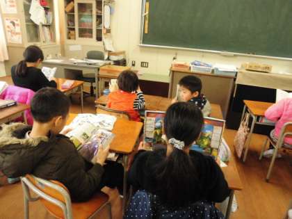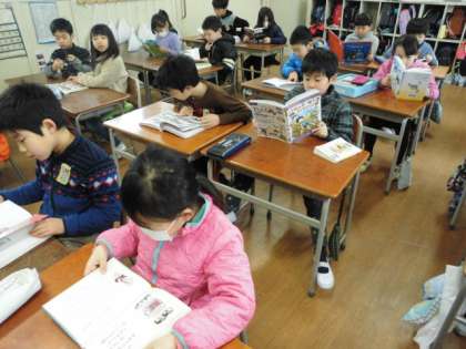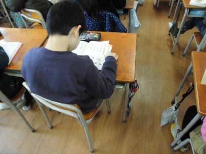 2年生の教室へ行くと、子どもたちは自分が選んだ本を読んでいました。