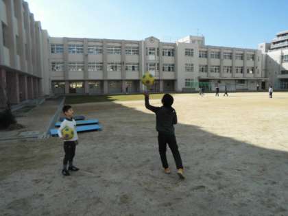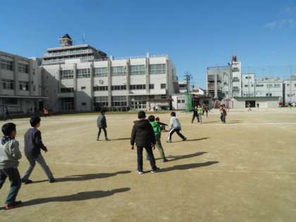 子どもたちは、太陽が出ていると寒くても運動場に出て様々な運動遊びをしています。