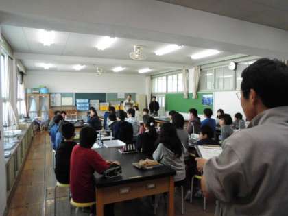 今日の6年生理科の実験授業に勝山中学校の理科の先生(上津先生、阪本先生)が参観に来られました。今月27日(月)に理科の出前授業をしていただくために子どもたちの様子、理科の学習の様子を観にきていただきました。