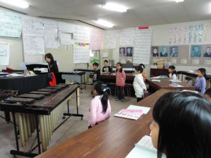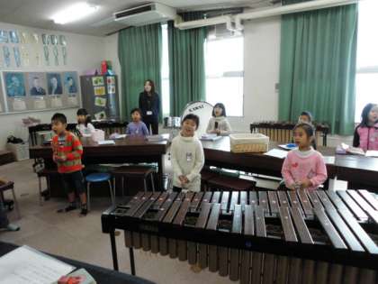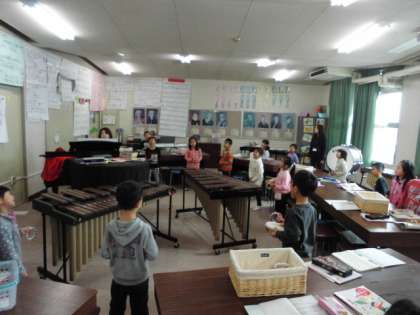 発声の練習や「スマイル」の歌唱、「子犬のマーチ」の鍵盤ハーモニカ合奏をしました。子どもたちは、良い姿勢を意識しつつよい歌声やしっかりとした鍵盤ハーモニカの演奏を音楽室に響かせました。