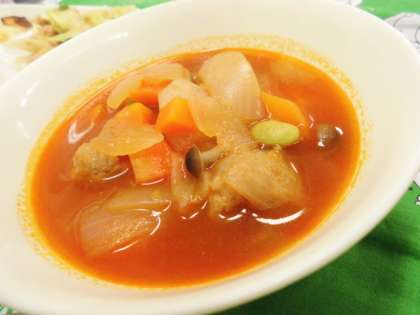 ミートボールのケチャップ煮は、風味と香りをつけるためにローレルがつかわれています。とてもおいしくいただきました。
