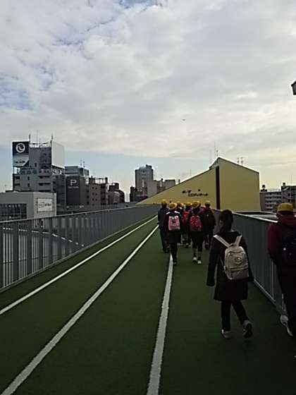 森之宮キューズモールにも立ち寄りました。特別のはからいで、屋上のランニング走路にも行きました。