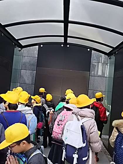 刻の庭(ときのにわ)にて。子どもたちは、見学を終えていろいろなことを思い、考えたことでしょう。