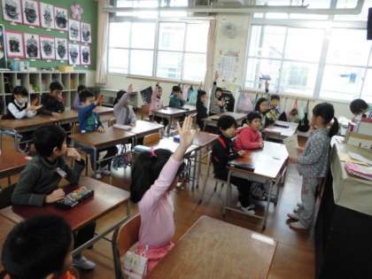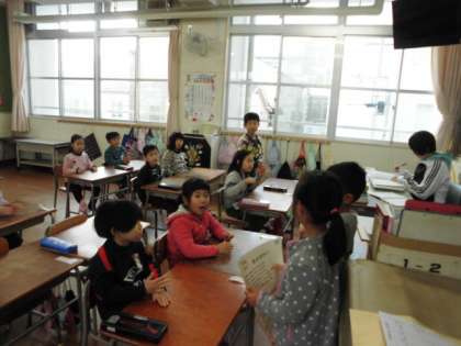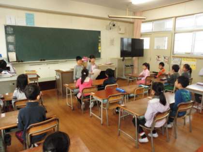 1年2組の教室へ行くと、読書タイムが終わり朝の会が始まっていました。