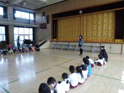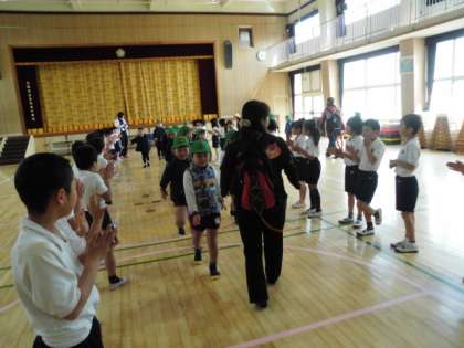 講堂から出るときも1年生が並んで、園児たちを送りました。
