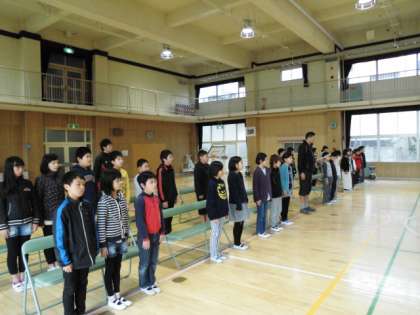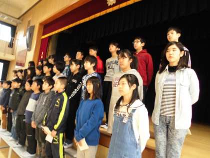 よびかけの後半でしたが、5年生も6年生も少し緊張感を漂わせながら一人一人の声が講堂に響き渡っていました。