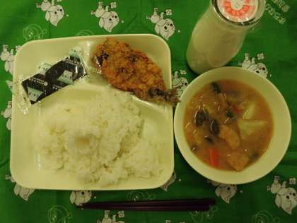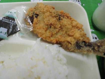 献立は、いわしのフライ、みそ汁、焼きのり、ごはん、牛乳でした。