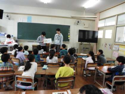 1年2組では読み手も聴き手もどちらも心を集中しており、みんなで読み聞かせを楽しんでいるようでした。