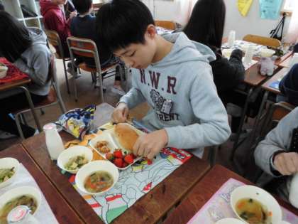 卒業お祝い献立を6年生は、いつも以上に喜んで食べていました。