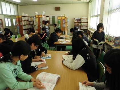 金曜日は、いつもよりも多くの子どもたちが図書室を訪れています。
