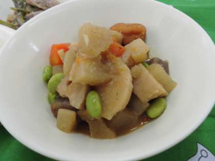 三色揚げ天と野菜の煮物は、揚げ天の大きさに野菜やこんにゃくを切りそろえていたので、食べやすく口の中で一度にいろいろな味を楽しむことができました。
