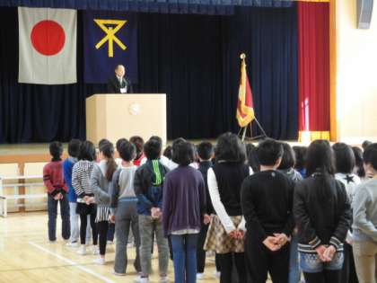6年生がいない分、こじんまりしていましたが、子どもたちはよい姿勢で話をよく聴いていました。