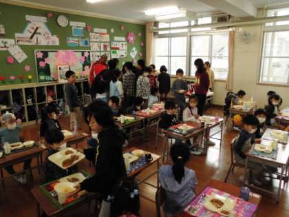6年生は、2クラスの1年生の給食と自分たちの給食の準備をしないといけません。