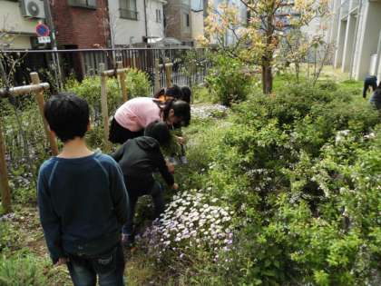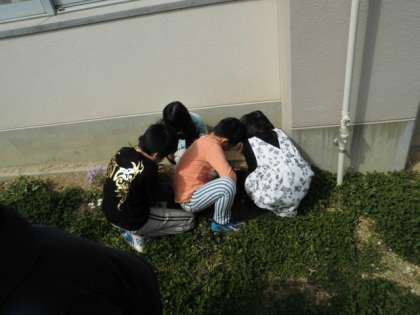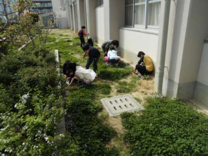3年生が理科の学習で観察するバタフライガーデンですが、春になって雑草の勢いが増してきていました。そこで4年生がきれいなバタフライガーデンを3年生に引き継ぐために雑草抜き作業をしたのです。