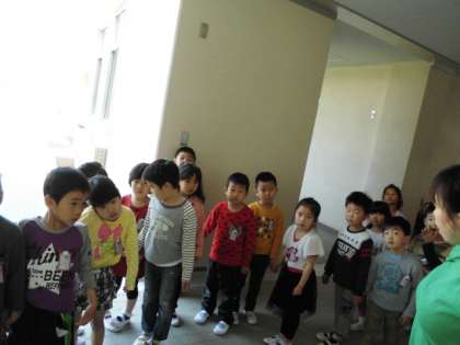 今回は、1年生だけで、担任がリードして学校内の教室や施設について確かめました。