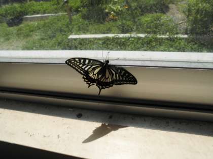 先日来、校長室で羽化したアゲハチョウがどこへ行ったか探していました。