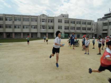 タイムでチーム分けをし、走る順などを話し合った後、試しのリレーをしました。