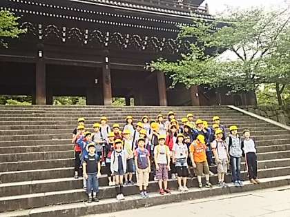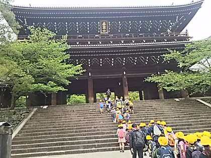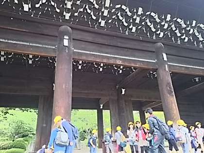 曇りです。知恩院に着きました。三門で、6年生の集合写真を撮りました。