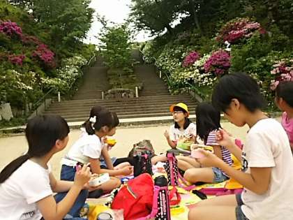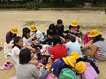 暑くなく、ちょうど気持ちのよい気温です。早いお弁当を楽しみながら食べています。