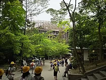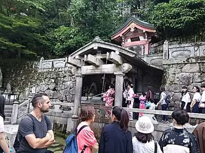 大修理中の大舞台から音羽の滝へ。新緑が目に染みるようでした。