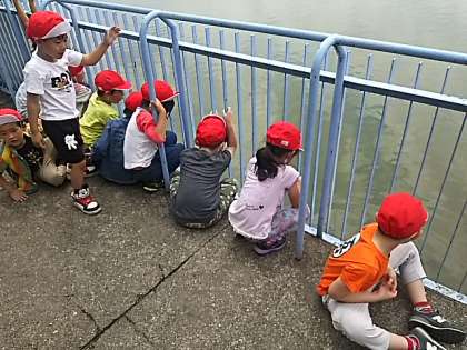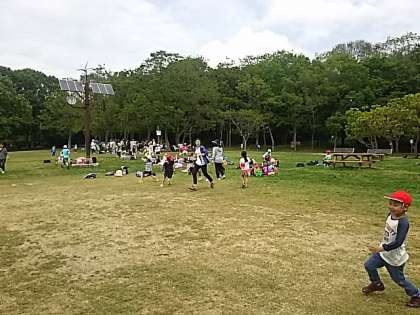 お弁当も終わって、池をながめたり、鬼ごっこをしたりして、遊んでいます。