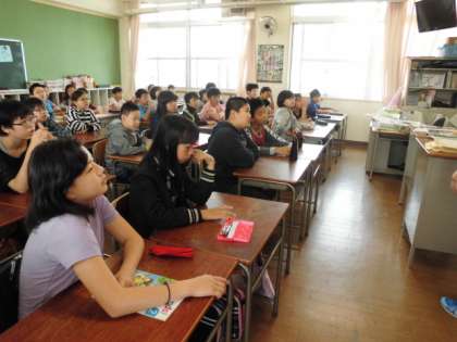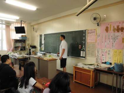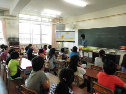 6年生は、黒板に一週間の時間割を書いて、それぞれの曜日の学習する教科を英語で言ってました。