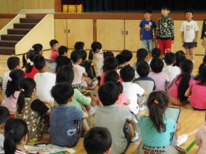 終わりのあいさつをして、楽しい学校たんけんも終了しました。